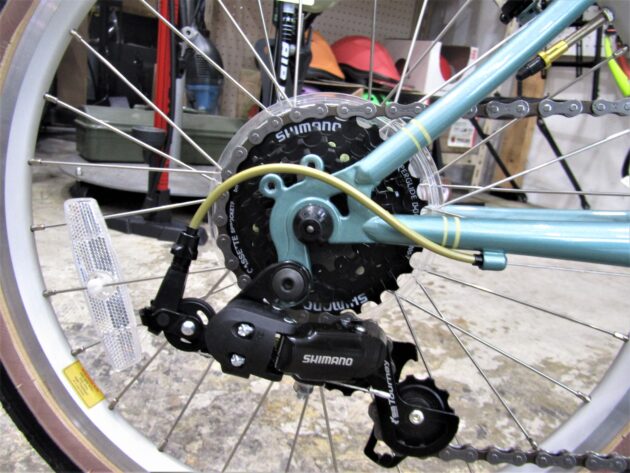 このトップチューブの部分がグイっと下がっているので乗り降りがしやすい訳ですね。