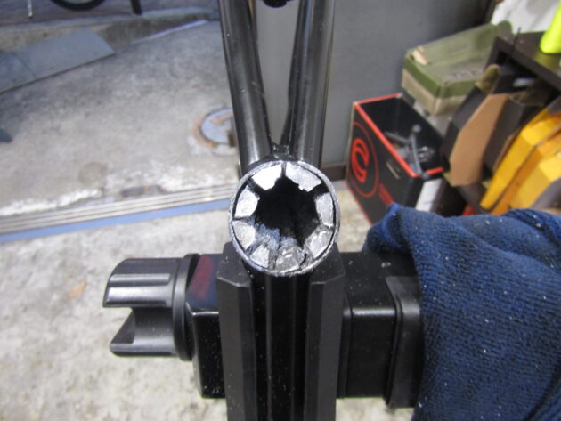 さて本日は固着シートポストのぶっこ抜き作業のご紹介。